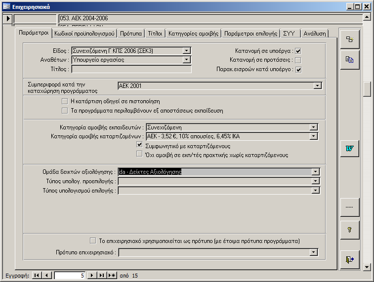 και πεδίο «ομάδα δεικτών αξιολόγησης» ορίζουμε την ομάδα που θα χρησιμοποιήσουμε για το επιχειρησιακό.