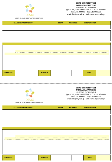 Demo-CashLaser-2Copy Πρότυπο για χρηματοοικονομικά Μέγεθος Α4 Διπλότυπο που χωρίζεται στη μέση. Ιδανικό εάν το χαρτί που χρησιμοποιείτε είναι διάτρητο στη μέση και κόβεται εύκολα. |