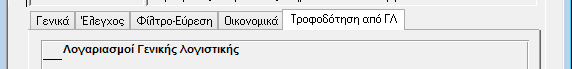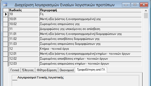 Μόλις το πατήσετε, στη λίστα εμφανίζεται το λογιστικό σχέδιο ΕΛΠ (αν έχει ήδη καταχωρηθεί) ή μια άδεια λίστα. Επίσης, στις σελίδες της φόρμας προστίθεται η σελίδα "Τροφοδότηση από ΓΛ".