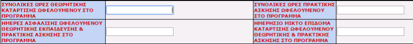 Συνολικές ώρες θεωρητικής και πρακτικής -> Μπαίνουν οι ώρες που προβλέπονται στο πρόγραμμα (οι ώρες θεωρίας στη φάση και το άθροισμα των ωρών πρακτικής στις 2 φάσεις πρακτικής αντίστοιχα) Ημέρες ασφάλισης ωφελουμένου θεωρητικής εκπαίδευσης και πρακτικής στο πρόγραμμα -> καταμέτρηση ημερών σε ωρολόγιο θεωρίας και (2) ωρολόγια πρακτικής. Ημερήσιο μικτό επίδομα κατάρτισης ωφελούμενου θεωρητικής …. -> H αμοιβή σε κάθε καταρτιζόμενο διαφέρει: το επίδομα είναι το σύνολο της μικτής αμοιβής δια το σύνολο των ημερών ασφάλισης (σε θεωρία και πρακτική) |