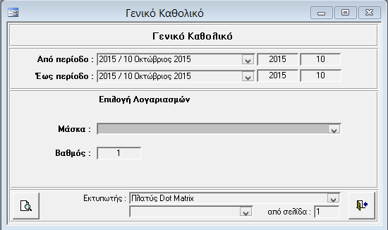 - Από περίοδο - Έως περίοδο (οι περίοδοι για τις οποίες θέλουμε το Γενικό Καθολικό)