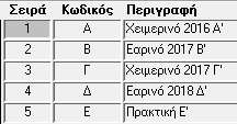 Στην καρτέλα Περίοδοι Κατάρτισης, προστέθηκε πεδίο Σειρά. Για κάθε εξάμηνο, θα πρέπει να εισάγετε και τον αριθμό σειράς. Δηλαδή, 1 για το Α εξάμηνο, 2 για το Β εξάμηνο, 3 για το Γ εξάμηνο, 4 για το Δ εξάμηνο και 5 για την πρακτική.