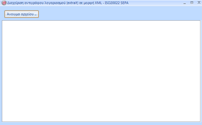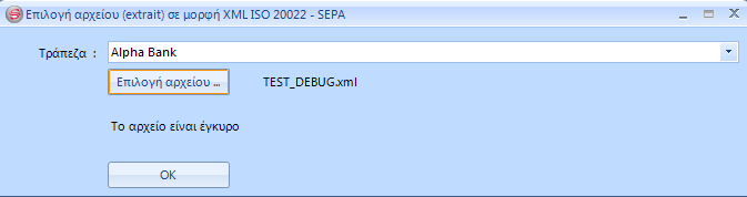 Επιλέξτε την τράπεζα και το αρχείο XML (με βάση το πρότυπο ISO 20022SEPA) που έχετε εξάγει από το μηχανογραφικό σύστημα της τράπεζας και πατήστε ΟΚ.