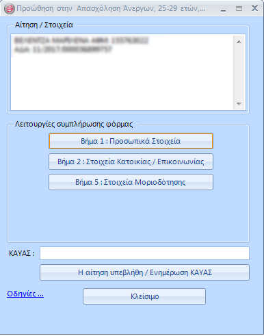 Με την παραπάνω ενέργεια, το παράθυρο διαχείρισης υποβολής της αίτησης θα κλείσει, το παράθυρο του Google Chrome θα κλείσει και ο ΚΑΥΑΣ θα καταχωρηθεί στην ομάδα στόχο στο πεδίο "ΚΑΥΑΣ", στην εγγραφή για την οποία κάνατε την υποβολή, καθώς επίσης θα τσεκαριστεί και το πεδίο "Αίτηση Voucher".