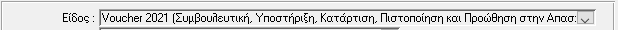 1. Να δημιουργήσετε ένα επιχειρησιακό τύπου Voucher, αντιγράφοντας ένα σχετικό μέσω της γνωστής διαδικασίας και να επιλέξετε στις παραμέτρους του επιχειρησιακού το είδος : Voucher 2021 (Συμβουλευτική, Υποστήριξη, Κατάρτιση, Πιστοποίηση και Προώθηση στην Απασχόληση Ανέργων ηλικίας 30-49 ετών σε τεχνικές δεξιότητες κλάδων αιχμής)