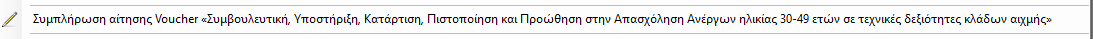 Συμπλήρωση αίτησης Voucher 2020, "Συμβουλευτική, Υποστήριξη, Κατάρτιση, Πιστοποίηση και Προώθηση στην Απασχόληση Ανέργων ηλικίας 30-49 ετών σε τεχνικές δεξιότητες κλάδων αιχμής"