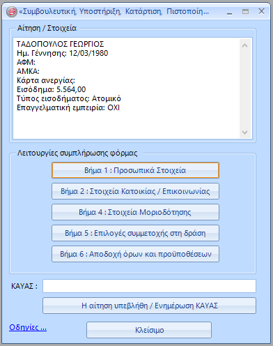Με την επιλογή σας, θα ανοίξει ο Google Chrome και στη συνέχεια η φόρμα διαχείρισης υποβολής της αίτησης, με τα στοιχεία του ωφελούμενου.