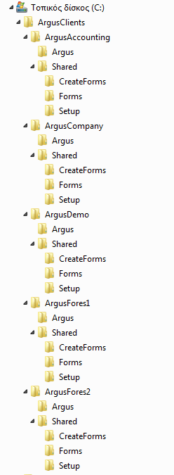 Σημείωση: Για φορείς που έχουν πολλές βάσεις Argus, όπως στην περίπτωση χρήσης των terminal servers, προτείνουμε την εξής δομή, πού έχει τακτοποιημένα τα αρχεία.