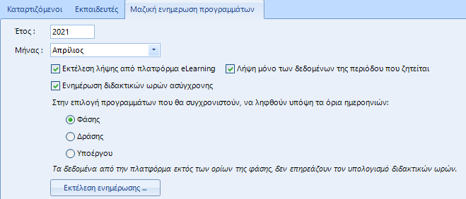 Μαζική ενημέρωση δεδομένων ασύγχρονης τηλεκατάρτισης |