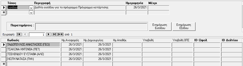 Εάν η συμπλήρωση των δελτίων εισόδου/εξόδου γίνει με χρήση του συστήματος, δημιουργείτε πακέτα συμπλήρωσης δελτίων, των ωφελουμένων κάθε προγράμματος.