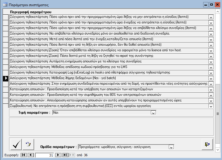 Βρίσκουμε την παράμετρο Ασύγχρονη τηλεκατάρτιση: Μέθοδος λήψης δεδομένων (Ναι - γιά batch) και την ορίζουνμε ως τιμή παραμέτρου το Ναι.