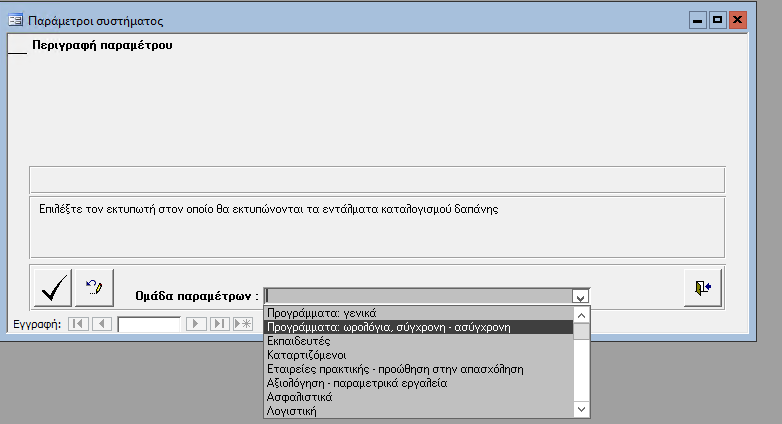 Βήμα 2: Στο Περιβάλλον του ArgusERP, στο μενού [Εργαλεία] \ [Γενικές Παράμετροι] \ [Παράμετροι Συστήματος], επιλέγουμε την ομάδα παραμέτρων Προγράμματα: ωρολόγια, σύγχρονη – ασύγχρονη.