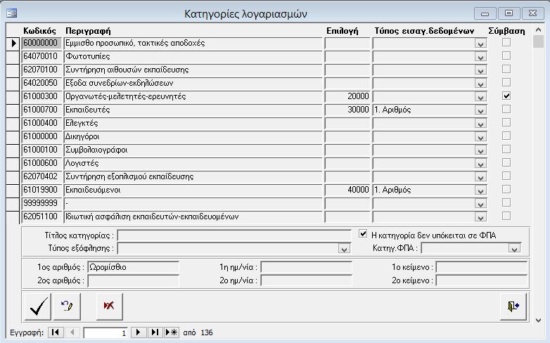 Για κάθε κατηγορία καταχωρούνται τα ακόλουθα στοιχεία :