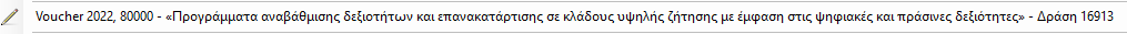 Συμπλήρωση αίτησης Voucher 2022, 80000 - «Προγράμματα αναβάθμισης δεξιοτήτων και επανακατάρτισης σε κλάδους υψηλής ζήτησης με έμφαση στις ψηφιακές και πράσινες δεξιότητες» - Δράση 16913