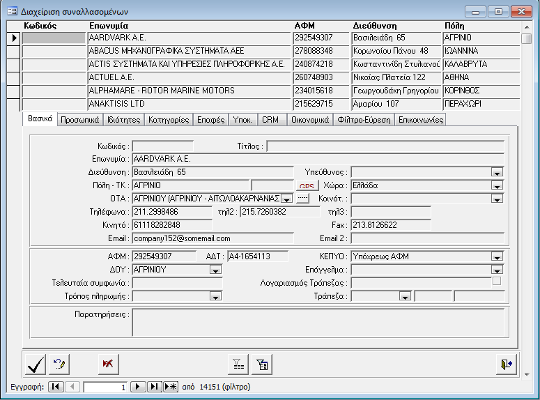 Στην σελίδα «Βασικά» καταχωρούνται για κάθε συναλλασσόμενο γενικά πληροφοριακά στοιχεία ως εξής:
