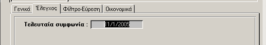 - Τελευταία συμφωνία. Επειδή είναι συχνό το φαινόμενο της συνεχούς προσπάθειας ελέγχου και συμφωνίας κινήσεων διαφόρων λογαριασμών (π.χ. ταμείου κλπ) ή συναλλασσόμενων. Γίνεται η συμφωνία, ακολούθως καταχωρείται στο σύστημα κάποια άλλη εγγραφή ή γίνεται κάποια μεταβολή και η συμφωνία χαλάει.Για την αποφυγή αυτών έγιναν οι ακόλουθες προσθήκες : Στην φόρμα διαχείρισης των λογαριασμών προστέθηκε μια σελίδα με τίτλο «έλεγχος» στην οποία υπάρχει το πεδίο «Τελευταία συμφωνία».