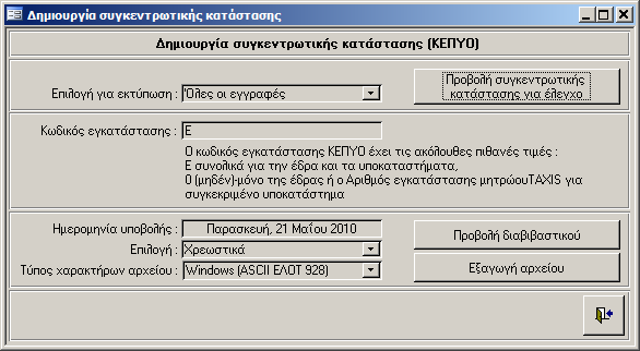 Το πλήκτρο «Προβολή συγκεντρωτικής κατάστασηςγια έλεγχο» δημιουργεί ένα «πρόχειρο» αρχείο για έλεγχο